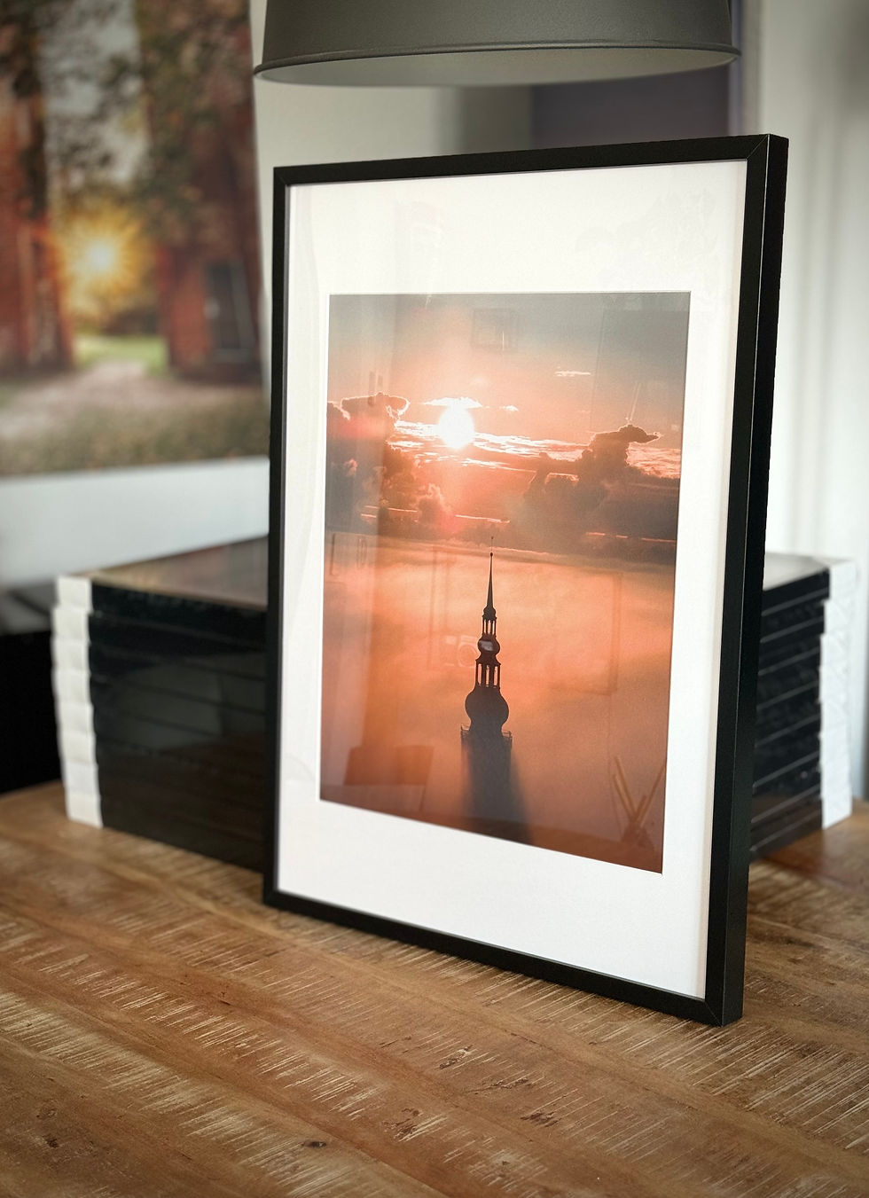 Alu-Dibond hoch I 37x50 cm Sunrise Museumshafen B-Ware